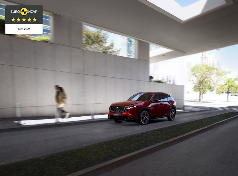 Der neue Mazda CX-5 belegt mit einer maximal möglichen Fünf-Sterne-Bewertung im aktuellen Euro NCAP-Test das Engagement von Mazda für fortschrittliche Sicherheits- und Assistenztechnologien. Dieses hervorragende Ergebnis umfasst eine 90 Prozent-Bewertung für den Schutz erwachsener Insassen, 89 Prozent für den Schutz von Kindern, 93 Prozent für ungeschützte Verkehrsteilnehmer und 83 Prozent für die Sicherheits- und Assistenzsysteme. Die innovativen Technologien von Mazda sorgen so für mehr Sicherheit, Gelassenheit und Fahrspaß.