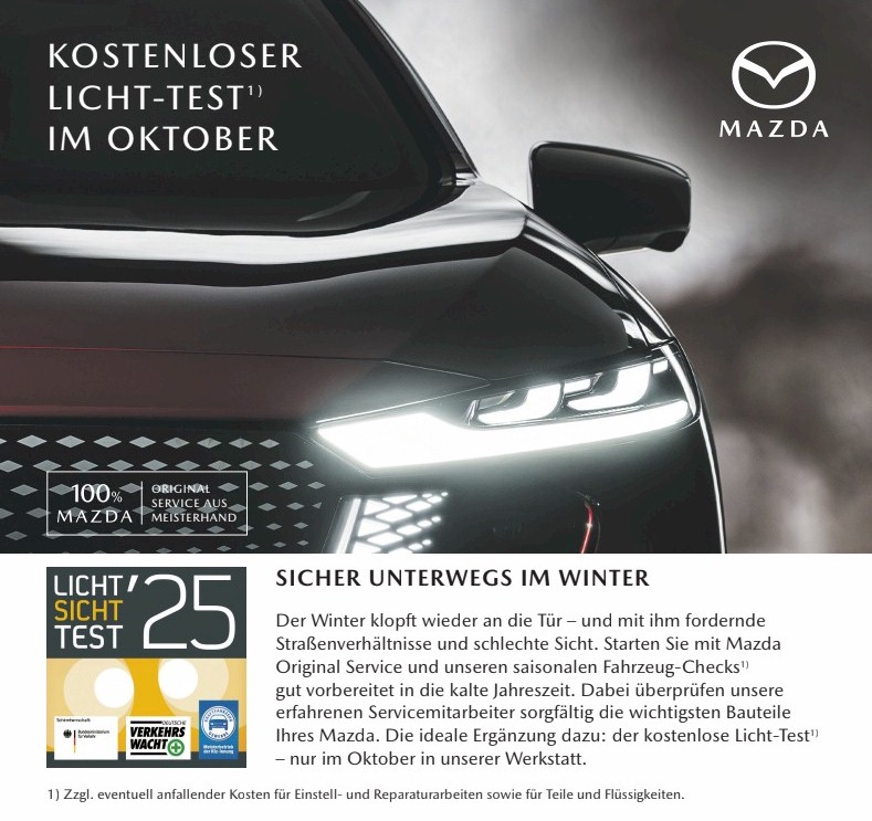 Die Firma Jokisch nimmt auch in diesem Jahr wieder an der bundesweiten Lichttest-Kampagne des Deutschen Kraftfahrzeuggewerbes teil. Die Überprüfung der Beleuchtungsanlage ist dabei kostenlos; lediglich ersetzte Leuchtmittel und die Arbeitszeit werden – nach Aufwand – berechnet.